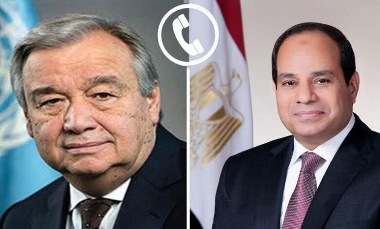 “اتصال هاتفي بين السيسي وجوتيريش: يؤكد على تنفيذ اتفاق وقف إطلاق النار في غزة”.