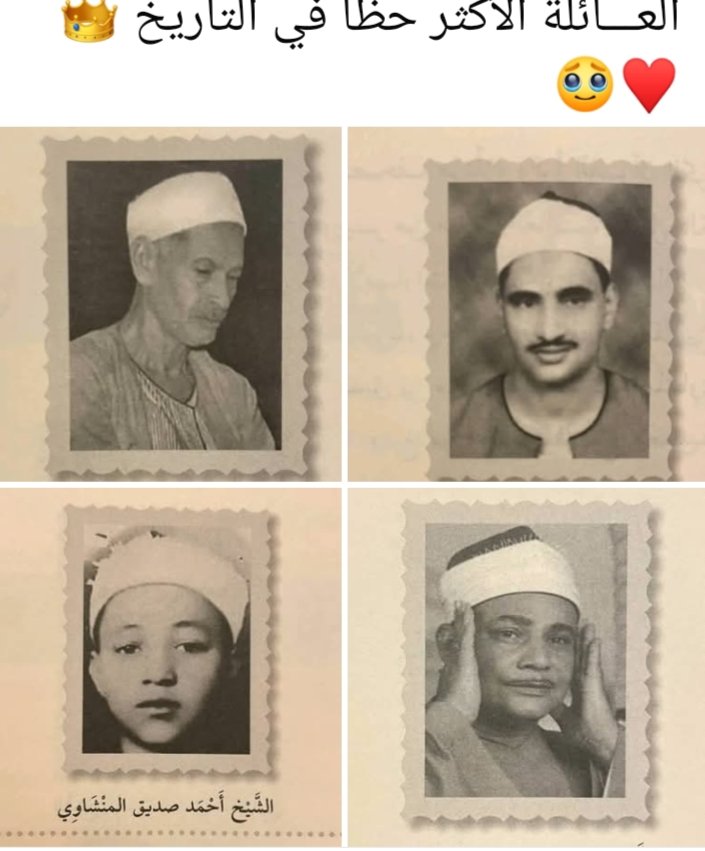 حيث ان الجد فضيله الشيخ صديق المنشاوي كبير قراء صعيد مصر والعم فضيله الشيخ محمد صديق المنشاوي أعظم من قرأ القرآن الكريم في العصر الحديث والاب فضيله الشيخ محمود صديق المنشاوي عميد قراء العالم الاسلامي