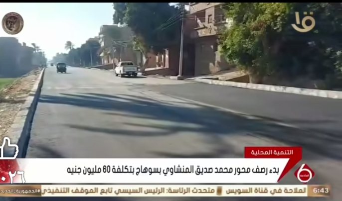 القناة الأولى نشرة أخبار السادسة تبرز بدء رصف محور الشيخ محمد صديق المنشاوي بمحافظة سوهاج