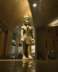ويُعد المتحف الكبير كما وصفته وزارة السياحة والآثار، أحد أهم وأعظم إنجازات مصر الحديثة؛ فقد أُنشئ ليكون صرحاً حضارياً وثقافياً وترفيهياً عالمياً متكاملاً، ويكون الوِجهة الأولى لكل من يهتم بالتراث المصري القديم، كأكبر متُحف في العالم يروي قصة تاريخ الحضارة المصرية القديمة، حيث يحتوي على عدد كبير من القطع الأثرية المميزة والفريدة من بينها بهو شاهق يتوسطه تمثال رامسيس الثاني بارتفاع 36 قدماً، وكنوز الملك الذهبي توت عنخ آمون والتي تُعرض لأول مرة كاملة منذ اكتشاف مقبرته في نوفمبر 1922علي أيدي عالم الاثار البريطاني” هوارد كارتر” .