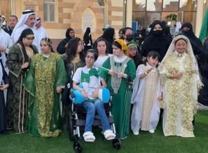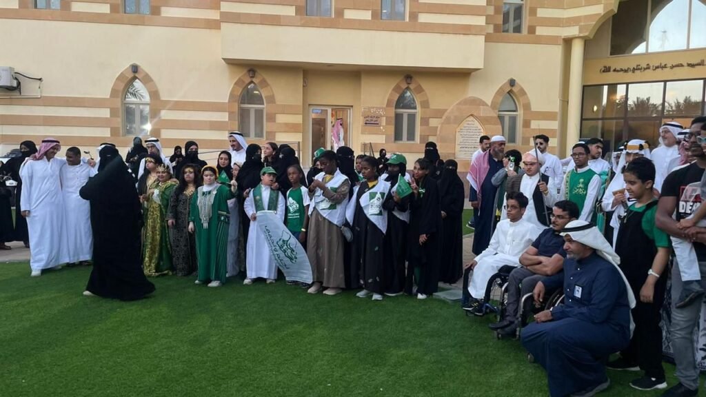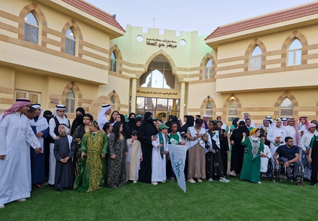 هذا وأشتملت الفعاليات التي أحتضنتها قاعة المركز حي الصفا النموذجي.. بأركاناً تمثل ديكورات المملكة العربية السعودية، بأعمال فنية بمشاركة أبناء مركز نجود للرعاية النهارية و جمعية خطى التوحد ، فكان الإحتفال مليئا” بالسعادة و البهجة وتميزت بإرتداء جميع الأبناء و البنات كبار و صغار بالملابس التراثية والتي تمثل حضارة السعودية وأصالتها وتلقوا في نهاية الحفل هداياهم الخاصة بهذه المناسبة.