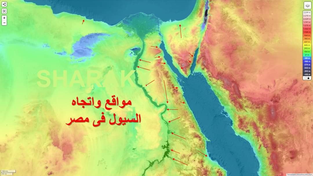 وتابع شراقي تصريحاته عبر صفحته على الفيسبوك قائلا تعاود الأمطار فى الهطول بعد الظهر (2-5 م) بشدة بدًء من ساحل البحر الأحمر عند شلاتين وعلى جبال البحر الأحمر فى وادى الحوضين الذى يصب عند شلاتين وقد يشهد هذا الوادى سيول، ثم تتحرك الأمطار غربا وجنوبا نحو مرتفاعات وادى العلاقى (بعيدا عن المناطق السكنية فى  أسوان)، تتلاشى على الحدود المصرية مع السودان حوالى الساعة 9 م، وتقدر كمية المياه التى سوف تسقط على حوض وادى العلاقى بحوالى 100 مليون م3 سوف يصل جزء منها إلى بحيرة ناصر.