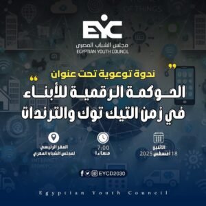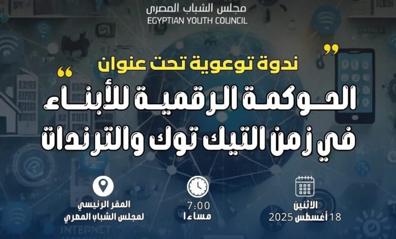 الحوكمة الرقمية للأبناء، أعلنت داليا الحزاوي، المنسق العام للبرنامج الوطني لتعزيز الحق في التعليم بمجلس الشباب المصري، إقامة ندوة توعوية هامة تحت شعار «الحوكمة الرقمية للأبناء في زمن التيك توك والترندات»، يوم الإثنين القادم الموافق ١٨ اغسطس الساعة السابعة مساءًا، تحت مظلة مجلس الشباب المصري. وذلك بمقر مجلس الشباب المصري