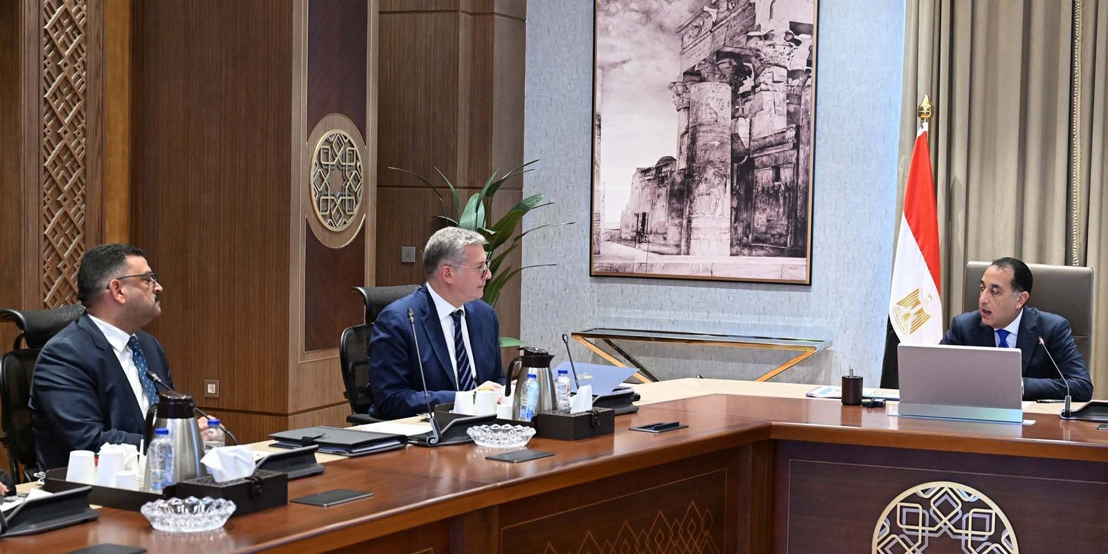 عقد الدكتور مصطفى مدبولي، رئيس مجلس الوزراء، اجتماعاً، اليوم؛ بمقر الحكومة بالعاصمة الجديدة، لمتابعة جهود جذب المزيد من الاستثمارات للمنطقة الاقتصادية للمثلث الذهبي، وذلك بحضور المهندس/ كريم بدوي، وزير البترول والثروة المعدنية، والمهندس/ محمد عبادي، رئيس الهيئة العامة للمنطقة الاقتصادية للمثلث الذهبي، والجيولوجى/ ياسر رمضان، رئيس الهيئة العامة للثروة المعدنية والصناعات التعدينية.