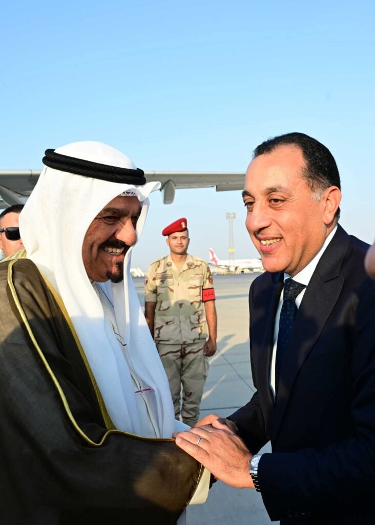 ولدى وصوله مطار القاهرة الدولي، أُقيمت مراسم استقبال رسمية لسمو الشيخ أحمد عبد الله الأحمد الصباح، رئيس مجلس الوزراء الكويت والوفد المرافق له، وشهدت مراسم الاستقبال عزف السلاميْن الوطنيين لجمهورية مصر العربية ودولة الكويت الشقيقة، أعقبه استعراض حرس الشرف، وذلك بحضور المهندس/ حسن الخطيب، وزير الاستثمار والتجارة الخارجية، والسفير/ غانم صقر على شاهين الغانم، سفير دولة الكويت لدى مصر.