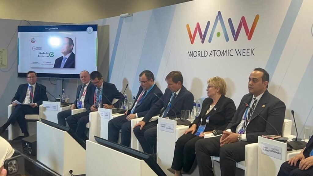 وخلال مشاركته في الأسبوع العالمي للطاقة الذرية (WAW)، شارك الدكتور أحمد السبكي في الجلسة الحوارية رفيعة المستوى بعنوان «توسيع حدود الإمكانيات: استخدام التكنولوجيا الإشعاعية في الممارسة الإكلينيكية»، التي شهدت حضورًا بارزًا لنخبة من كبار العلماء والمسؤولين الصحيين من روسيا وبيلاروسيا وصربيا، وأدارها سيرجي فلاديميروفيتش نائب وزير الصحة في الاتحاد الروسي، وهو خبير في ضمان الجودة وسلامة المنتجات الطبية.