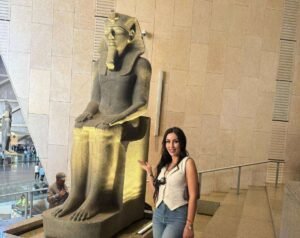 سكينة بوزيدي، التي تخرجت في كلية السياحة بالولايات المتحدة الأمريكية، أكدت أن زيارتها إلى مصر كانت بمثابة حلم تحقق، وقالت في تصريحاتها: “من لم يزر الأهرامات والمتحف المصري لم يرَ الجمال الحقيقي، ولم يعش تجربة مشاهدة الحضارة الحقيقية عن قرب”.