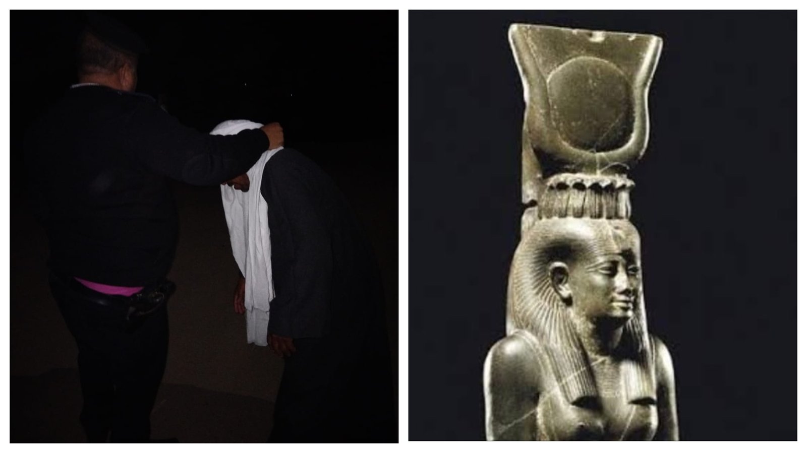 وتبين من الفحص أن السيارة كان يقودها المتهمان «أ. ج» و«م. ع»، حيث عثر بداخلها على التمثال الأثري مخبأً تمهيدًا لتهريبه، وبمواجهتهما، أقرا خلال التحقيقات بأنهما كانا في طريقهما إلى القاهرة لبيع القطعة الأثرية، بمساعدة شخص يحمل الجنسية السعودية يُدعى «م. ع»، لبيعها إلى أحد رجال الأعمال بالقاهرة.