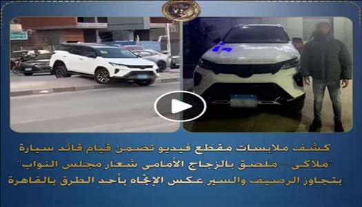 كشفت الأجهزة الأمنية بوزارة الداخلية ملابسات مقطع فيديو جرى تداوله على مواقع التواصل الاجتماعي، تضمن قيام قائد سيارة «ملاكي» بوضع ملصق يحمل شعار مجلس النواب على الزجاج الأمامي، وتجاوز الرصيف والسير عكس الاتجاه بأحد الطرق بالقاهرة