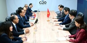 على هامش مشاركته نيابة عن فخامة السيد الرئيس عبد الفتاح السيسي، رئيس الجمهورية، في قمة مجموعة العشرين (G20) لعام 2025 بمدينة “جوهانسبرج” في جنوب أفريقيا، التقى الدكتور مصطفى مدبولي، رئيس مجلس الوزراء، اليوم، السيد/ فام مينه تشين، رئيس وزراء فيتنام، وذلك بحضور الدكتور بدر عبد العاطي، وزير الخارجية والهجرة وشئون المصريين بالخارج، والسفير/ أحمد علي شريف، سفير مصر في جنوب أفريقيا.