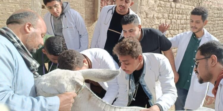 قافلة بيطرية بجامعة سوهاج تعالج 350 حيوانًا بالمحامدة القبلية