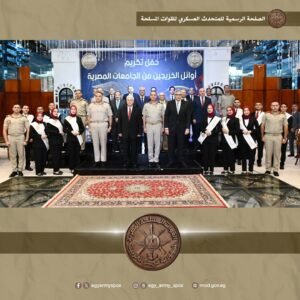 قوات الدفاع الشعبى والعسكرى، فى إطار حرص القوات المسلحة على تعزيز أوجه التعاون مع كافة الوزارات والمؤسسات بالدولة إيماناً بأهمية التكامل فى الدور المجتمعى والتنسيق المشترك الذى يعود بالنفع على الوطن بكافة المجالات ، نظمت قوات الدفاع الشعبى والعسكرى بالتعاون مع وزارة التعليم العالى والبحث العلمى إحتفالية لتكريم أوائل الطلبة من خريجى الجامعات المصرية للعام الدراسى الماضى تقديراً لتميزهم العلمى وحرصهم على التفوق خلال مختلف المراحل الدراسية ، وذلك بحضور الدكتور / أيمن عاشور وزير التعليم العالى والبحث العلمى .