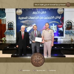 قوات الدفاع الشعبى والعسكرى، فى إطار حرص القوات المسلحة على تعزيز أوجه التعاون مع كافة الوزارات والمؤسسات بالدولة إيماناً بأهمية التكامل فى الدور المجتمعى والتنسيق المشترك الذى يعود بالنفع على الوطن بكافة المجالات ، نظمت قوات الدفاع الشعبى والعسكرى بالتعاون مع وزارة التعليم العالى والبحث العلمى إحتفالية لتكريم أوائل الطلبة من خريجى الجامعات المصرية للعام الدراسى الماضى تقديراً لتميزهم العلمى وحرصهم على التفوق خلال مختلف المراحل الدراسية ، وذلك بحضور الدكتور / أيمن عاشور وزير التعليم العالى والبحث العلمى .