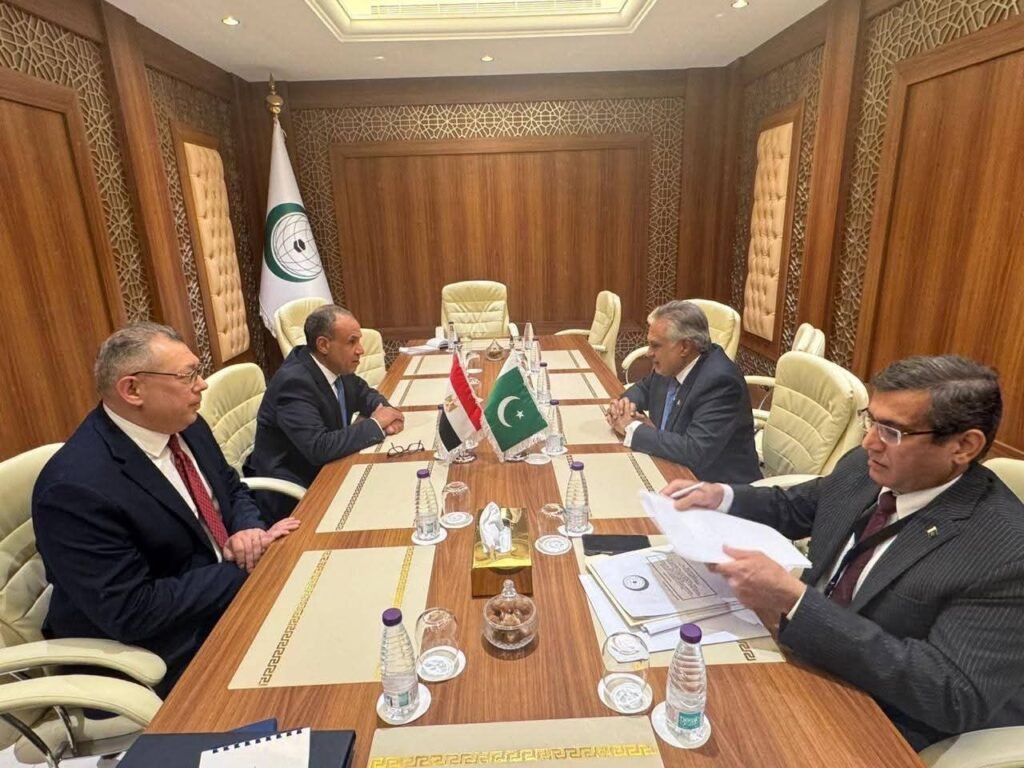 التقى د. بدر عبد العاطي وزير الخارجية والهجرة وشئون المصريين بالخارج، يوم السبت ١٠ يناير ٢٠٢٦، بالسيد محمد إسحاق دار نائب رئيس الوزراء ووزير خارجية جمهورية باكستان الإسلامية، وذلك علي هامش مشاركتهما في الدورة الاستثنائية لمجلس وزراء خارجية منظمة التعاون الاسلامي في جدة.