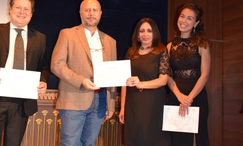 واختُتمت الأمسية بقيام الأستاذة الدكتورة رانيا يحيى بتقديم شهادات تقدير لكل من الأستاذ الدكتور إيمانويل شامبيني، والمايسترو باولو شيبيليا، والسوبرانو جوليا ليبوري، تقديرًا لمشاركتهم القيّمة في هذه الأمسية الثقافية والفنية الرفيعة.