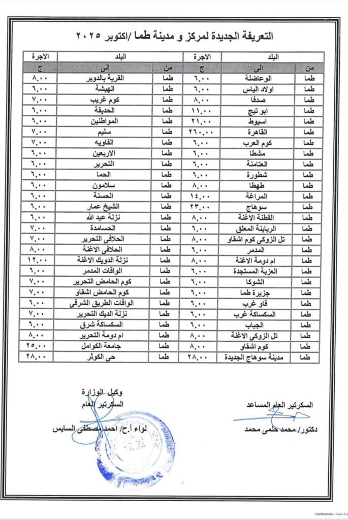 أصدر اللواء الدكتور عبد الفتاح سراج، محافظ سوهاج، القرار رقم ٧٢٦ لسنة ٢٠٢٥، بشأن تعديل تعريفة الركوب لسيارات الأجرة العاملة بنطاق المحافظة، وذلك عقب اجتماع اللجنة العليا للإشراف على مشروع مواقف سيارات النقل الجماعي، الذي عُقد اليوم الجمعة الموافق ١٧ أكتوبر ٢٠٢٥.