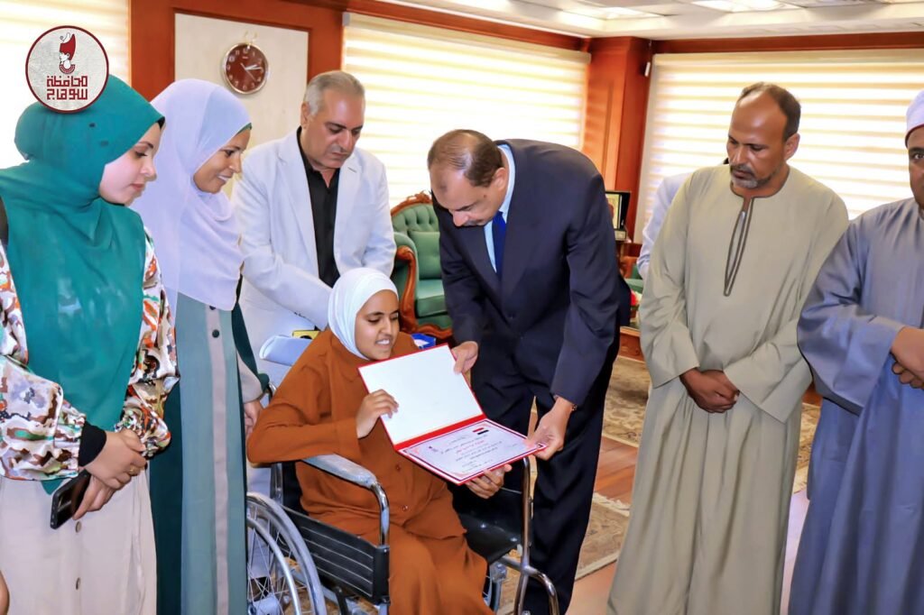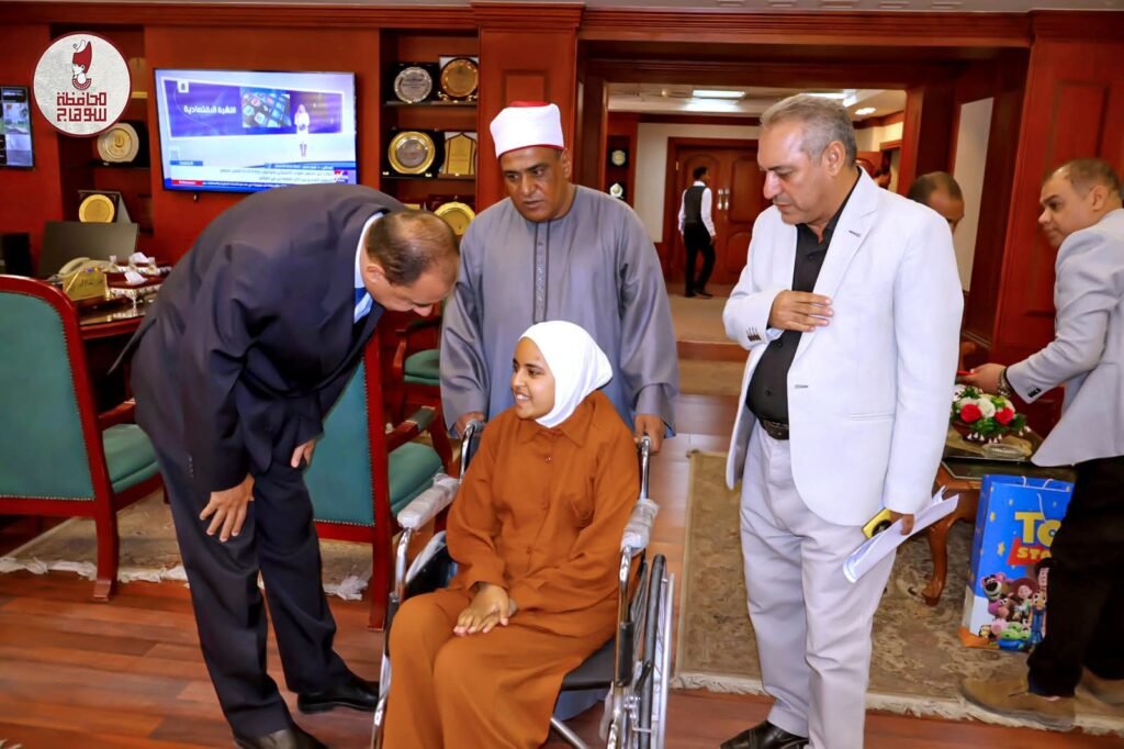 محافظ سوهاج يكرم الطالبة “آية السيد مهني” الأولى على المحافظة في الإعدادية الأزهرية للمكفوفين بنسبة 99.6%