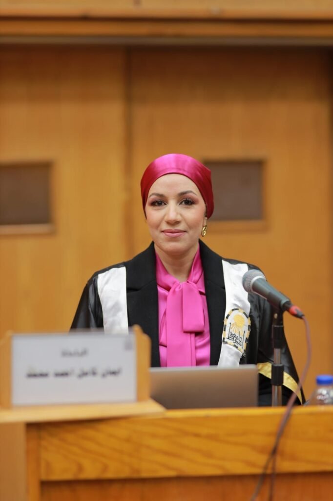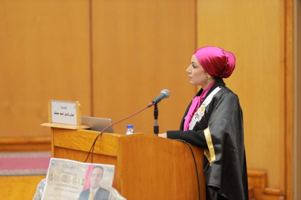 وجاء قرار لجنة الحكم والمناقشة، منح الباحثة إيمان كامل أحمد محمد درجة دكتوراة.