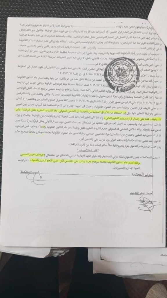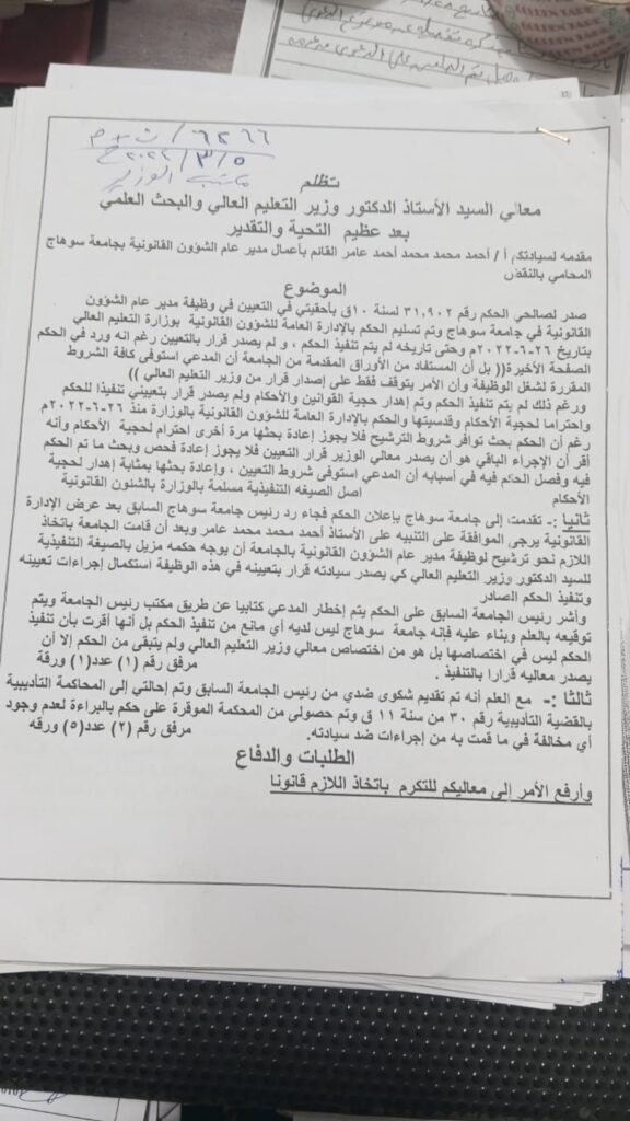 موظف بالتعليم العالي يستغيث لعدم تنفيذ حكم قضائي بترقيته