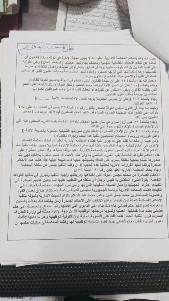 وأكد الموظف في استغاثته أن الحكم صدر من محكمة القضاء الإداري بعد نظر شامل في أوراق القضية، إلا أن الجهة الإدارية لم تقم بتنفيذه حتى تاريخه، ما اعتبره مخالفة صريحة لأحكام القانون وتجاهلًا لحقوقه الوظيفية.