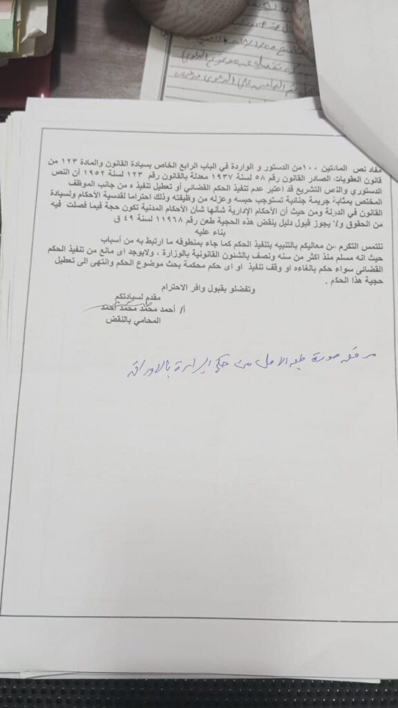 وطالب الموظف رئيس مجلس الوزراء ووزير التعليم العالي وهيئة الرقابة الإدارية بالتدخل العاجل لوقف ما وصفه بـ”التعنت الإداري” وإنهاء معاناته المستمرة منذ صدور الحكم.