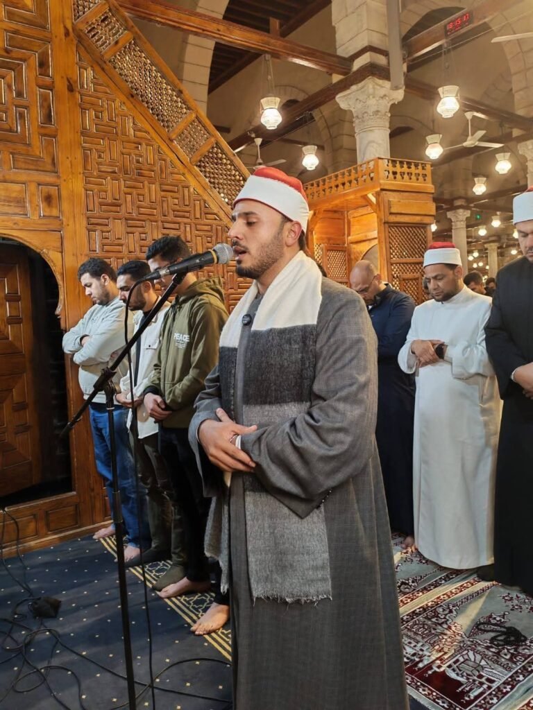 كما تولّى القارئ محمد وفيق إمامة المصلين بمسجد عمرو بن العاص، وأحيا القارئ محمود السيد صلاة التراويح بمسجد مصر الكبير، فيما أمَّ القارئ أبو بكر سيد المصلين بمسجد العزيز الحكيم، في ليالٍ ازدانت بتلاوات ندية جمعت بين جمال الأداء ودقة الأحكام وروحانية المعنى.