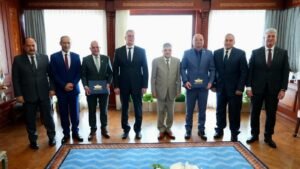 في خطوة هامة لتعزيز جهود قناة السويس للتحول الأخضر وفق معايير الاستدامة البيئية الدولية، شهد المهندس كريم بدوي، وزير البترول والثروة المعدنية، والفريق أسامة ربيع، رئيس هيئة قناة السويس، اليوم الأحد، مراسم توقيع مذكرة تفاهم للتعاون المشترك بشأن مشروع إنشاء بنية تحتية خضراء يتضمن إنشاء محطة لإسالة وتموين الغاز الطبيعي المسال (LNG) بمنطقة الرسوة ببورسعيد، بحضور الفريق أشرف عطوة، نائب رئيس الهيئة، وعدد من أعضاء مجلس إدارة الهيئة، وذلك بمقر الهيئة بمبنى الإرشاد بمحافظة الإسماعيلية.