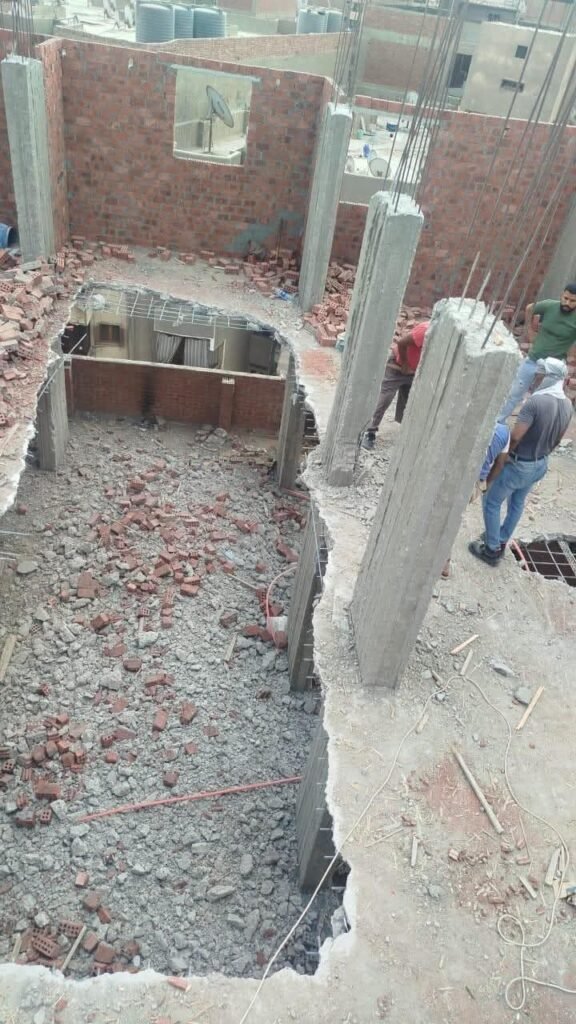 وأشار تقرير قطاع التفتيش والمتابعة إلى أنه خلال جولة للقطاع لمتابعة أعمال المركز التكنولوجي وخدمات التصالح والتقنين بحي الهرم بمحافظة الجيزة ، تم رصد عقار مخالف بشارع قطب متفرع من شارع المنشية بميدان الساعة ، حيث تبين أن الترخيص الممنوح لصاحب العقار (أرضي جراج + ٤ أدوار علوية متكررة + ٢٥٪ غرف سطح) بارتفاع مسموح لا يتجاوز 16 متراً، إلا أن المالك أقام شدة خشبية للدور السادس علوي بالمخالفة وعلى الفور، نفذت لجنة قطاع التفتيش إزالة للشدة الخشبية وإزالة جزئية للدور الخامس بقص الأعمدة وتكسير السقف تمهيداً للإزالة الكاملة.