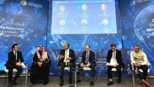 وشارك الوزير في الجلسة الوزارية الحوارية رفيعة المستوى خلال الافتتاح والتي ضمت السيد بندر الخريف وزير الصناعة والثروة المعدنية بالمملكة العربية السعودية والسيد مايك كوب، كبير مستشاري وزير الطاقة الأمريكي، و السيد روهيتش دهوان، الرئيس والمدير التنفيذي للمجلس الدولي للتعدين والمعادن، ووكيل وزارة الصناعة الفلبيني، حيث استعرض الوزير رؤية مصر الطموحة لتعظيم الاستفادة من إمكانات قطاع التعدين، مؤكداً أن الدولة تضع هذا القطاع في قلب أولوياتها خلال المرحلة الحالية، إدراكاً لما يمتلكه من فرص كبيرة وقيمة اقتصادية.