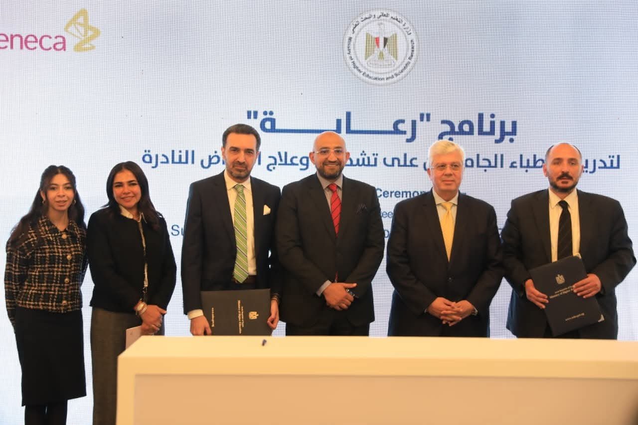 شهد الدكتور أيمن عاشور، وزير التعليم العالي والبحث العلمي، توقيع اتفاق شراكة وإطلاق برنامج «رعاية» لتدريب الأطباء الجامعيين بالمستشفيات الجامعية على التشخيص المبكر وعلاج الأمراض النادرة لدى الأطفال، بالتعاون بين المجلس الأعلى للمستشفيات الجامعية وشركة أسترازينيكا مصر، إحدى الشركات الرائدة عالميًا في صناعة الدواء، وذلك بحضور الدكتور عوض تاج الدين، مستشار رئيس الجمهورية لشؤون الصحة والوقاية، والدكتور أشرف حاتم رئيس لجنة الصحة بمجلس النواب، ورئيس لجنة القطاع الطبي بالمجلس الأعلى للجامعات، والدكتور حسام عثمان نائب الوزير لشؤون الابتكار والذكاء الاصطناعي والبحث العلمي، ولفيف من رؤساء الجامعات وقيادات الوزارة وشركة أسترازينيكا مصر والإعلاميين.