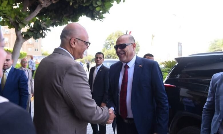 التدريب المهني والتشغيل وتوفير فرص العمل للشباب ، ودمج ذوي الهمم في سوق العمل ،بالتعاون مع القطاع الخاص ،وكذلك حماية العمالة غير المنتظمة ،وتراخيص عمل الأجانب،و تهيئة بيئة عمل لائقة مواتية للاستثمار والأمان الوظيفي للعمال خاصة مع بداية تطبيق قانون العمل الجديد رقم 14 لسنة 2025 ، مطلع شهر سبتمبر المقبل..كما بحث الجانبان بحضور عدد من المستثمرين، التعاون لتطوير منظومة التدريب المهني بالمحافظة.. وفي ختام الاستقبال تبادل الوزير والمحافظ دروع التكريم بينهما …شارك في اللقاء عدد من النواب ورجال الأعمال وقيادات من الوزارة و المحافظة..