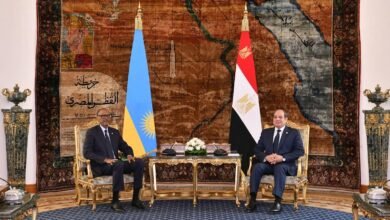 “الرئيس السيسي يستقبل الرئيس الرواندي ويبحث معه التعاون الثنائي والقضايا الإقليمية”.