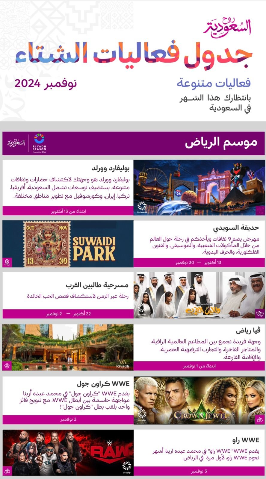 تطلق السعودية في شهر نوفمبر سلسلة من العروض والفعاليات السياحية التي تعد بتجارب لا تنسى للسياح من مختلف الأعمار والتوجهات. ...