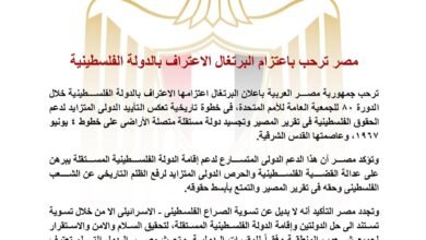 كتب/ احمد عمار الشطوريترحب جمهورية مصر العربية باعلان البرتغال اعتزامها الاعتراف بالدولة الفلسطينية خلال الدورة ٨٠ للجمعية العامة للأمم المتحدة،…